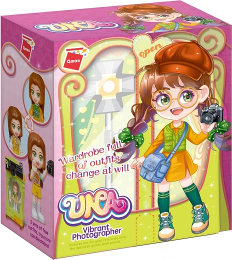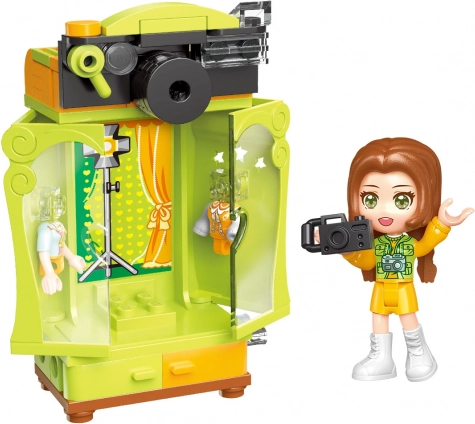 Byggesættet Qman UNA Series fotografens garderobeskab udvikler børns fantasi og finmotorik. Børn kan bygge et stilfuldt skab med fotografiske tilbehør og spille historier fra studiet og sjove fotosessioner. Takket være kompatibiliteten med andre byggesæt kan scenen nemt udvides med nye idéer.