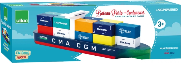 Dette stilfulde træskib bringer storhavnens verden ind på børneværelset. Med 18 magnetiske containere kan børn nemt laste og losse, hvilket styrker fantasi og koordination. Modellen er inspireret af et rigtigt skib drevet af LNG og er skabt i samarbejde med CMA CGM.