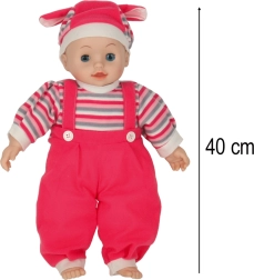 Når man trykker på den stofbeklædte mave, afgiver dukken 4 realistiske lyde: gråd, latter samt ordene “mor” og “dada”. Leg med dukken hjælper børn med at efterligne voksne, udvikle sociale færdigheder, empati og evnen til at udtrykke følelser.