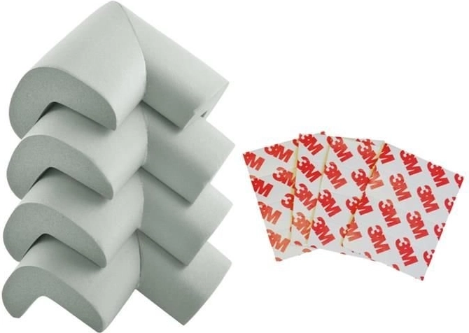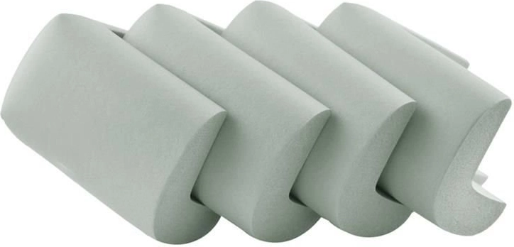 Praktisk sæt med fire skumhjørnebeskyttere, der sikrer børns sikkerhed ved skarpe kanter på borde, skabe og trapper. Den bløde og fleksible vandafvisende skum absorberer stød, er let at rengøre og sidder fast takket være den stærke dobbeltsidede tape på en ren og affedtet overflade. Det diskrete grå design passer til de fleste interiører.