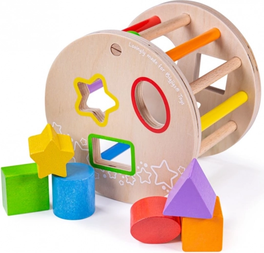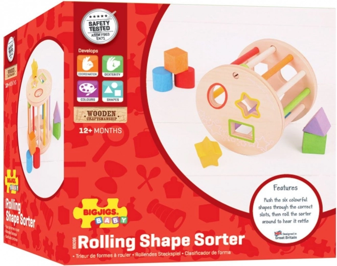 Denne trævalse med former er et glimrende valg som det første læringslegetøj. De farvede geometriske dele lægges i de tilsvarende åbninger, hvorved børn træner logisk tænkning, tålmodighed og præcision i grebet. Når den rulles hen over gulvet, udsender legetøjet behagelige klaprende lyde, som motiverer til yderligere udforskning.