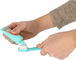 Legetøjet udvikler finmotorik, fantasi og sociale færdigheder. Takket være realistisk tilbehør som spejl, sprøjte og “boremaskine” lærer børn korrekt tandbørstning og rutinen ved et tandeftersyn uden stress.