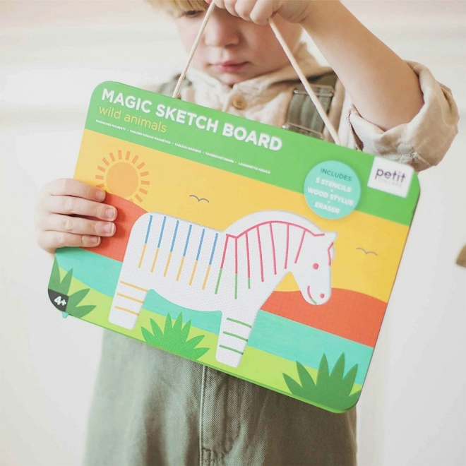 Denne magnetiske tegnetavle giver ikke kun masser af sjov, men udvikler også børns kreativitet og finmotorik. Med den medfølgende pen, som aldrig bliver væk takket være snoren, og 5 stk. tegneskabeloner er dette legetøj ideelt til endeløs tegning og læring.