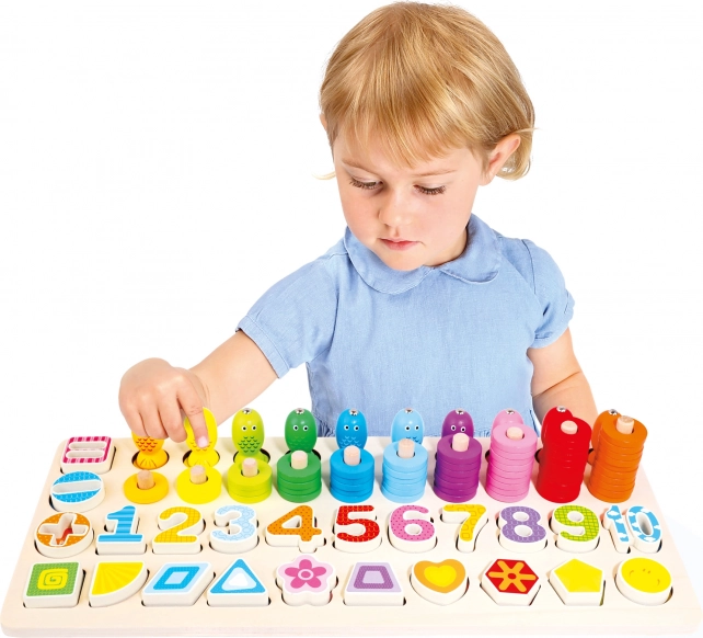 Ved hjælp af farverige former og tal, understøtter legetøjet læring af grundlæggende tælleevner og genkendelse af former.