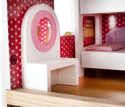 Huset indeholder LED-belysning, som kan placeres efter barnets ønsker og dermed øger den magiske verden af fantasi. Det er opdelt i tre niveauer forbundet af smukke hvide trapper og tilbyder fem værelser og en balkon, hvilket giver rigeligt med plads til en fire-etagers familie af dukker.