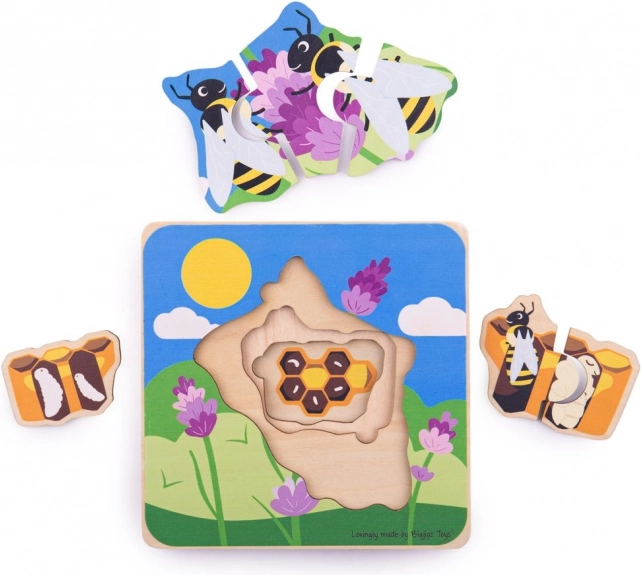 Oplev, hvordan et æg bliver til en bi! Dette lærerige og sjove lagdelte puslespil med bitema har 4 lag, 7 brikker og er ideelt til børn fra 2 år. Fremstillet af kvalitetstræ fra ansvarlige kilder, opfylder europæiske sikkerhedsstandarder og byder på en robust, holdbar udførelse.