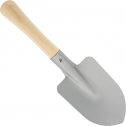 Skovl, rive og spade i børnestørrelse er lavet af robust metal. Glatte træhåndtag ligger godt i små hænder og støtter et sikkert greb.