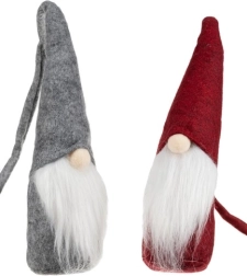 To charmerende nisser med lange skæg og spidse huer er lavet af kvalitetsfilt og plast. De føles behagelige at røre ved, og takket være den indvendige vægt står de solidt på en plan overflade, så du nemt kan placere dem på en hylde, kommode eller skrivebord.