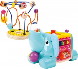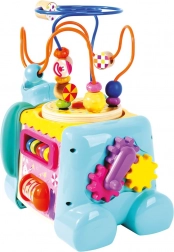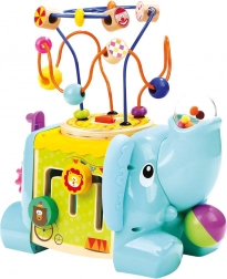 Denne multifunktionelle motoriske terning i elefantform er en ideel læringslegetøj til de mindste. Takket være de farverige elementer og de mange aktiviteter træner børn naturligt finmotorik, rumlig forståelse og sensoriske færdigheder. Den øverste del består af en motorisk labyrint med perler, mens siderne prydes af tandhjul, skydbare dele og andre smarte opgaver.