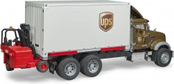Bruder lastbil Mack UPS tilbyder mange funktioner, der simulerer en ægte lastbil. Takket være åbningsdørene i kabinen og lastrummet kan man nemt håndtere indersiden af modellen. Inklusiv en integreret gaffeltruck med variabel gaffel til forskellige typer last.