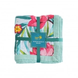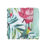 Bomuldsmusselin-tæppet garanterer maksimal komfort takket være fire lag og føles behageligt at røre ved.
