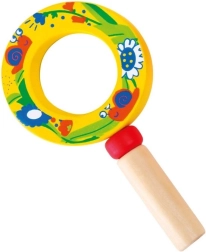 Dette kvalitetsforstørrelsesglas til børn kombinerer et solidt træhåndtag og et let plastlinseelement, så det er sikkert og behageligt for små hænder. Glade illustrationer af insekter og blomster motiverer børn til at opdage detaljerne i verden omkring dem – fra blomster til små kryb.