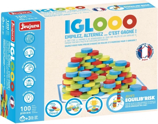 Med træbyggesættet Jeujura Igloo kan små byggere gå i gang med at skabe en solid og stilfuld konstruktion. Legetøjet fremmer koncentrationsevnen og de finmotoriske færdigheder og er ideelt til børn fra tre år. Sættet er omhyggeligt fremstillet af bøg- og fyrretræ fra Frankrig. Hver del er malet med sikre, vandbaserede farver, hvilket sikrer overensstemmelse med miljømæssige standarder.