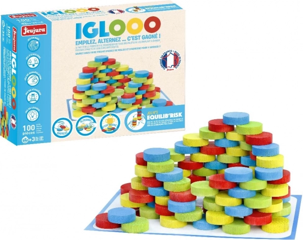 Jeujura Igloo er et træbyggesæt fremstillet i Frankrig, som inspirerer kreativitet og styrker finmotorikken. Det indeholder 100 dele af massivt træ, der er sikre takket være brugen af vandbaserede farver og lakker.