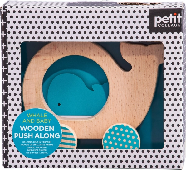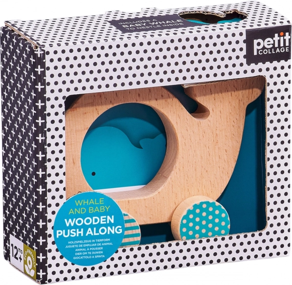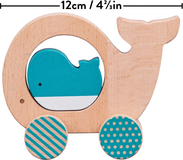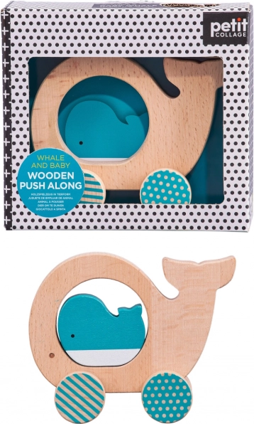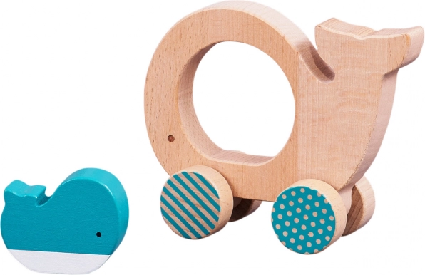 Sød trælegetøj på hjul i form af en hval med en udtagelig unge, som støtter finmotorik og fantasi hos børn fra 12 måneder. Fremstillet af 100% FSC bøgetræ, lakeret med ugiftige vandbaserede farver og pakket i en miljøvenlig emballage af genbrugskarton. Fri for BPA og bly, opfylder alle sikkerhedsstandarder.