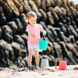 Fremstillet af fødevaregodkendt silikone, som er robust, let at vaske og skånsom mod både børn og miljø. Perfekt til at bygge sandslotte, bære vand, hjælpe i haven og andre udendørs lege med åbne muligheder.