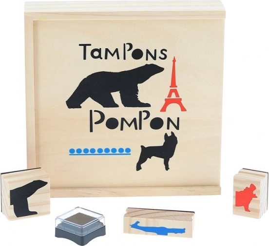 Opdag skaberglæden med et sæt træstempler inspireret af François Pompons kunst. Sættet indeholder 23 stempler og 3 stempelpuder i farverne rød, sort og blå, så både børn og voksne nemt kan lave dyrekompositioner og originale aftryk. Understøtter kreativitet, fantasi og legende læring om dyr.