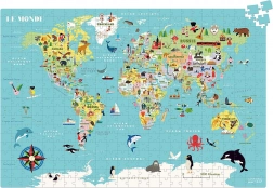 Stilfuldt og kvalitetskarton-puslespil med verdenskort, der udvikler tålmodighed, koncentration og geografi-kundskaber. Illustrationerne af den svenske kunstner Ingela P. Arrhenius udmærker sig ved retroæstetik, markant typografi og legende farver, som gør hver samling til en sjov rejse jorden rundt.