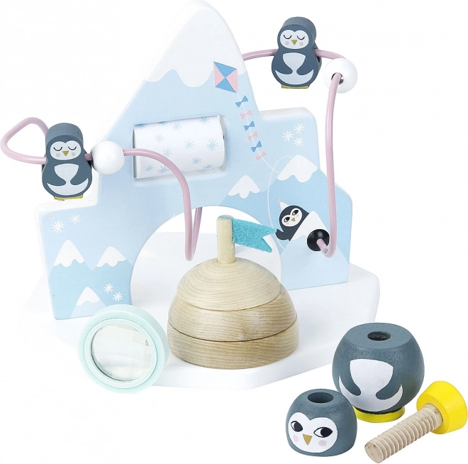 Motorisk labyrint Island forbinder leg og læring ved hjælp af farverige pingviner, der glider ned gennem labyrinten. Børnene træner ikke kun deres motoriske færdigheder, men får samtidig masser af sjov og bevægelse. Legetøjets hovedfordele omfatter støtte til kreativitet og logisk tænkning. Derudover er det et designstykke af den kendte danske illustrator Michelle Carlslund.