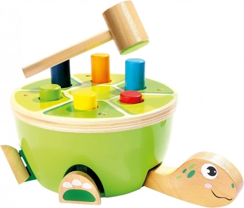 Sjov træbankebænk i form af en skildpadde, der udvikler barnets finmotorik, hånd-øje-koordination og koncentration. De farvede pinde bankes ned i skjoldet med en hammer med filtbelægning for mere stille leg, mens skildpaddens ben og hoved “vækker til live” – en fantastisk måde at støtte nysgerrighed og glæden ved at opdage på.
