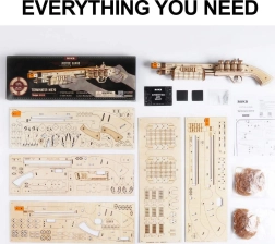 Få et unikt byggesæt, der kombinerer læring og underholdning i form af et træmekanisk haglgevær. Glæd dig til præcise detaljer og funktionsdygtige komponenter, som gør det muligt at skyde med gummiprojektiler mod træfigurer. Denne model er en perfekt kombination af design og mekanik, der vil begejstre enhver modelbygger.