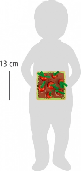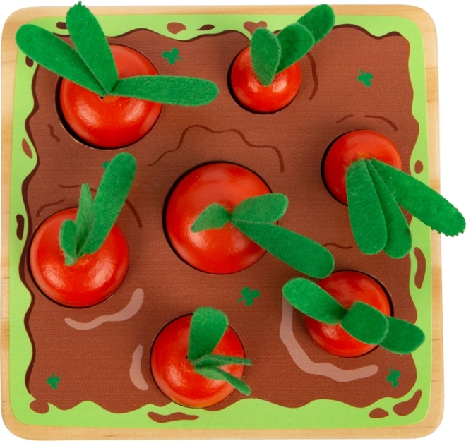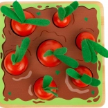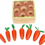 Inspireret af Montessori-metoden giver spillet børn mulighed for at lære på en sjov måde. Spillet med at indsætte og sortere kræver, at børn gennem sammenligning sætter de syv gulerødder i forskellige størrelser i de rigtige huller på brættet. Dette spil sæt hjælper med at udvikle finmotorik, forståelse af størrelser og perception. Desuden understøtter det realistiske design med grønne filtdetaljer også rollespil og udvikling af fantasien hos unge gartnere.