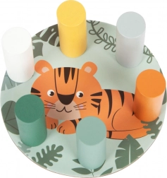 Sjovt træ balancespil inspireret af Jenga: SMALL FOOT SAFARI vaklende tårn med en farvet terning, der bestemmer, hvilken klods der skal tages ud. Udvikler fingerfærdighed, balance, koncentration og tålmodighed – og med de søde safarimotiver i moderne farver glæder det hele familien.