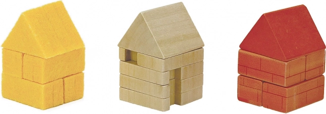 Robuste trædele og farverige former indbyder til at bygge små huse og samle ulven. Børn udvikler naturligt finmotorik og fantasi.