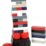 Spillet kan også spilles som et klassisk vaklende tårn uden sokkel og timer, hvilket gør det til et alsidigt valg for både børn og voksne. De farverige træklodser udvikler finmotorik, fokus og tålmodighed, mens lyd-summeren øger dramatikken. Den solide kombination af træ og plast sikrer lang holdbarhed og sikker leg.