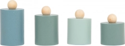Indeholder 2 skåle og 4 glatforarbejdede lodder i gråblå nuancer – ideel til børnebutik og læring derhjemme.