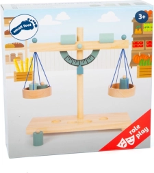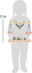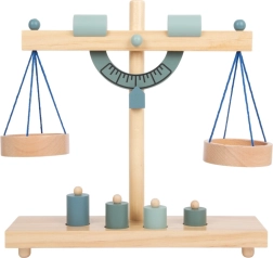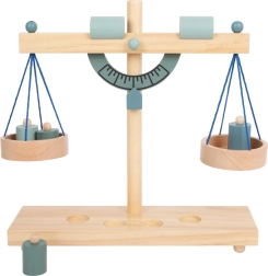 Opdag et sjovt og lærerigt legetøj for små butiksassistenter – en gråblå træskålvægt. Med fire lodder og justerbare modvægte lærer børn gennem leg om balanceprincipper, vejning og finmotorik, samtidig med at de udvikler sociale færdigheder i rolleleg som butik.
