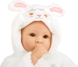 Sættet inkluderer en blød plysheldragt, et krammeblødt tæppe og en sut – alt i sarte farver for en beroligende effekt. Dukken er glimrende til at udvikle finmotorik, empati og rollelege for børn fra 2 år.