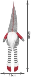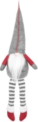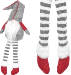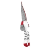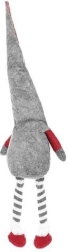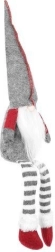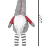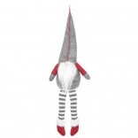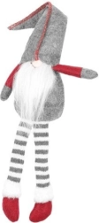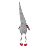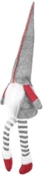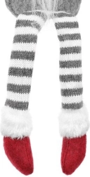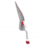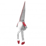 Den tekstile dekorationsnisse i grå-rød udførelse har en klassisk høj spids hue, lange stribede ben og et blødt hvidt skæg. Takket være den særlige bagprofil sidder den stabilt på kanten af et bord eller en hylde og giver interiøret et varmt og hyggeligt udtryk.