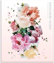 En rig komposition af pæonblomster i pastelfarver giver det færdige billede en subtil elegance og et dekorativt udtryk.