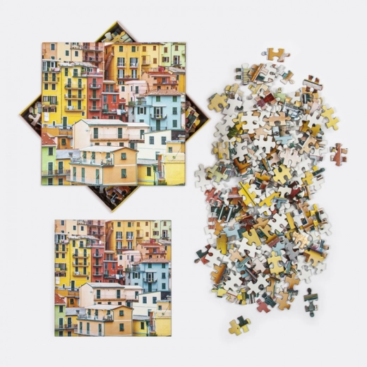 Nyd at lægge Galison Hilsen fra Cinque Terre puslespil med 500 brikker i enestående kvalitet og smukt design.