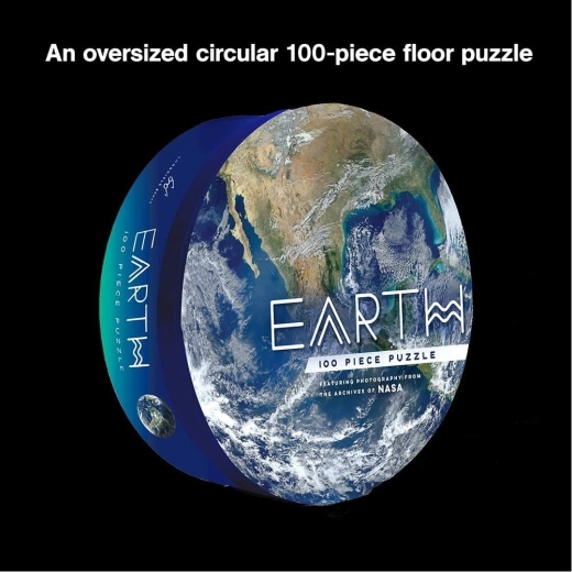 Rundt Jord-puslespil med 100 brikker fra Chronicle Books baseret på NASA-fotografier. Premiumkvalitet, diameter 76 cm, udvikler logik og motorik. Alder 6+.