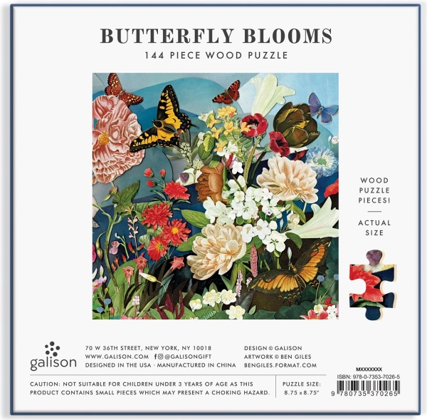 Ben Gilles’ kunstværk, der fokuserer på natur og metamorfose, er forvandlet til et unikt træpuslespil med 144 brikker. Hver brik er præcist fremstillet, så den passer perfekt sammen, hvilket sikrer en kvalitetsrig og underholdende oplevelse under samlingen.