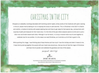 Nyd adventens magi med et smukt puslespil designet af Michael Storrings. Det indeholder 1000 brikker og byder på en strålende julescene fuld af skøjteløbere og oplyste bygninger. De brikker af høj kvalitet passer præcist og underholder hele familien.