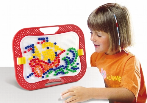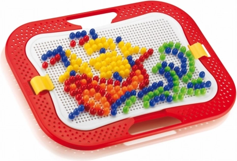 Mosaikker hjælper børn med at udvikle finmotorik, kreativitet og fantasi. De består af en kuffert, en perforeret spilleplade og farvede knapper/pinde med hoveder i forskellige farver, diametre og former. Ved hjælp af disse knapper, som sættes i hullerne i spillepladen, skaber børn forskellige billeder eller mønstre. Når legen er slut, kan alt opbevares i kufferten, hvis låg, når det er sikret med låsen, fungerer som selve spillepladen. Fremstillet af plast i topkvalitet. Vigtigste egenskaber: udvikler finmotorik, kreativitet og fantasi indeholder 300 knapper med en diameter på 10 mm praktisk kuffert til opbevaring