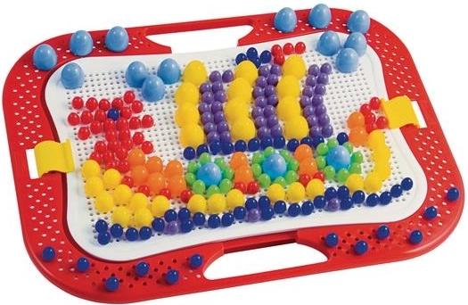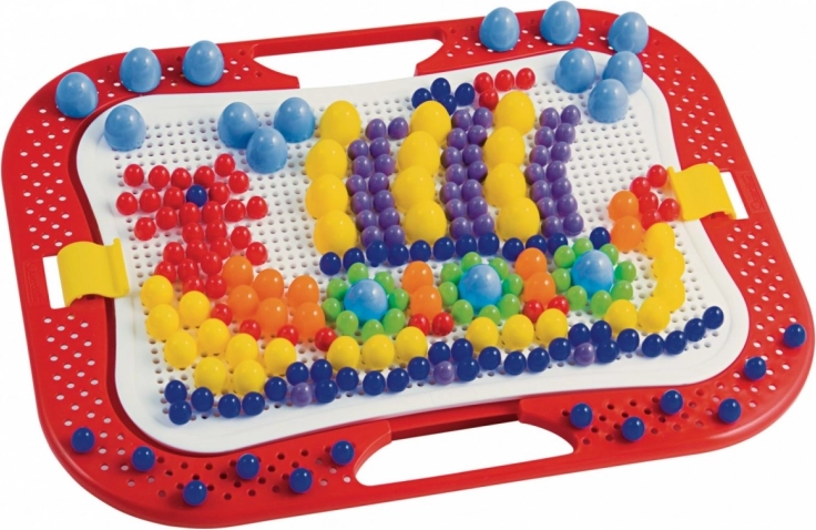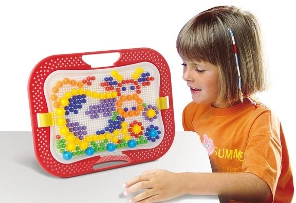 Mosaikker udvikler børns finmotorik, kreativitet og fantasi. De består af en kuffert, en perforeret spilleplade og farvede knapper med hoveder i forskellige farver, diametre og former. Ved hjælp af disse knapper, som sættes i hullerne i spillepladen, laver børn forskellige billeder eller mønstre. Når legen er slut, kan alt opbevares i kufferten, hvis låg, når det er sikret med en lås, selv fungerer som spilleplade. Fremstillet af plast i topkvalitet. Hovedfunktioner: udvikler finmotorik, kreativitet og fantasi indeholder 300 knapper med diameter 10, 15, 20 mm praktisk kuffert til opbevaring