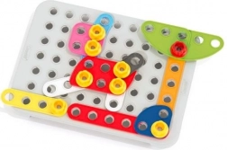 Byggesæt Quercetti Tecno Jumbo er ideel til børn i alderen 3 til 6 år, der ønsker at udvikle deres kreativitet og finmotorik. Sættet indeholder 52 farverige plastdele, herunder skruer, møtrikker og andre elementer til at skabe forskellige strukturer.