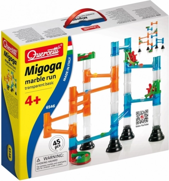 Kuglebanen Migoga fra Quercetti hjælper med at udvikle børns motorik og kreativitet. Børn kan designe deres egne baner og se, hvordan kuglerne kører gennem konstruktionerne.