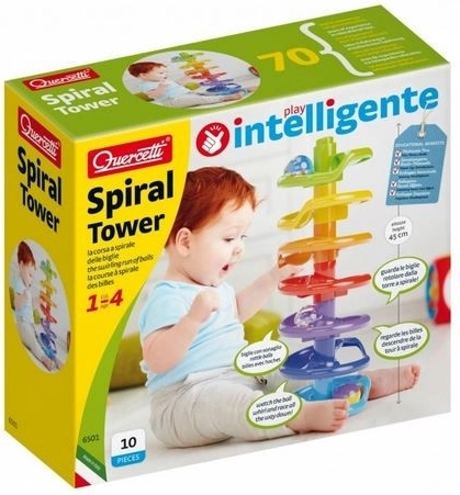Quercetti Spiral Tower er et fantastisk legetøj til udvikling af motoriske færdigheder og sjov. Børn fra 1 til 4 år kan bygge høje spiralformede tårne af farverige dele og se kugler med raslende perler rulle ned. Dette legetøj fanger deres opmærksomhed og støtter hånd-øje-koordination.
