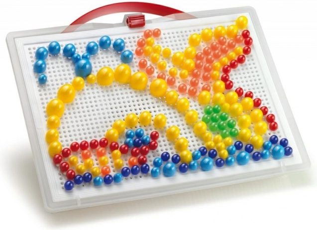 Skab fantastiske mosaikker og mønstre med de farverige knopper placeret på den faste hvide plade.