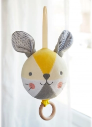 Den melodiske bold formet som en kanin er designet til at berolige og underholde din baby. Træk forsigtigt i træringen, og den blide melodi “You Are My Sunshine” spiller i cirka to minutter. Takket være det superbløde ydre i økologisk bomuld er den ideel til at kramme og til de første taktile oplevelser.