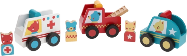 Giv dine børn timevis af sjov og kreativ udvikling med dette sæt redningskøretøjer. Hvert af de robuste og holdbare køretøjer er lavet af 100% FSC®-certificeret træ, hvilket garanterer, at materialet stammer fra ansvarligt forvaltede skove.