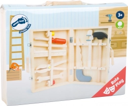 Praktisk træ-kuffert med et sæt på 8 stykker værktøj til små gør-det-selv’ere fra 3 år. Højkvalitets træudførelse, sikker opbevaring af værktøj og udvikling af finmotorik gør dette sæt til et ideelt valg til kreativ leg.