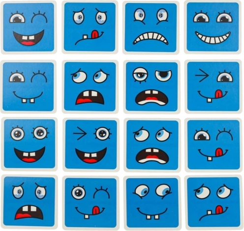 Hvilket humør er du i i dag? Glæde, tristhed, overraskelse eller vrede – med dette spil lærer både børn og forældre at navngive og udtrykke følelser. Spillerne trækker et kort med et udtryk og samler så hurtigt som muligt det samme ansigt af farvede klodser. Enkle regler, hurtige runder og masser af grin og fokus i ét.