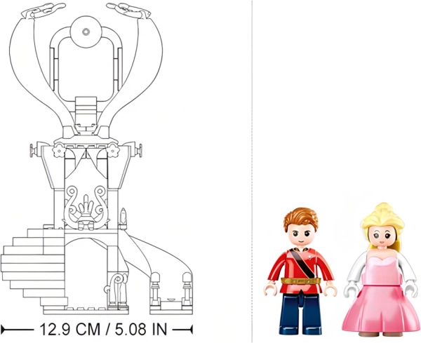 Byggesættet indeholder et smukt lilla-blåt tårn med funktionelle elementer som en rutsjebane og trappe.