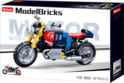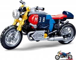 Denne detaljerede motorcykelmodel i ikonisk café racer-stil tilbyder en iøjnefaldende kombination af blå, rød og gul med det markante nummer 38. Realistiske elementer som funktionelle hjul og udstødninger gør den til et attraktivt motorcykel-byggesæt til både leg og udstilling.